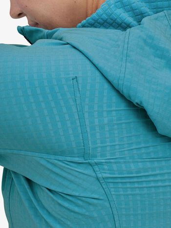従来のレギュレーター・フリースが備えている保温性と伸縮性と通気性に、摩擦や悪天候に耐えるという利点を加えました。